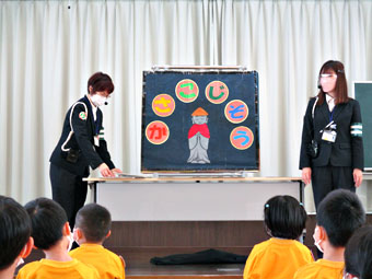 今回の交通安全教室は、これまでの交通安全の約束を振り返りながら、「道路の渡り方」や「ストップのやくそく」などを再確認しました。